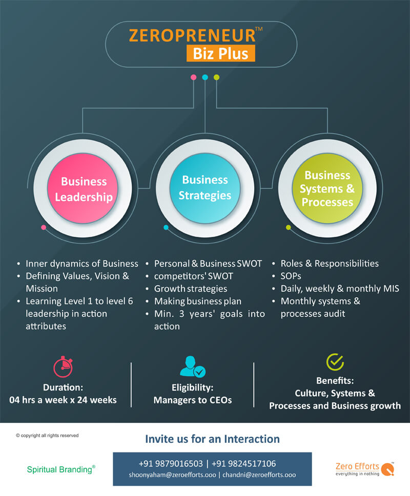 This is first level “Business Coaching” programme. It covers all detailed elements of successful business – Leadership, Systems & Processes and Strategies.