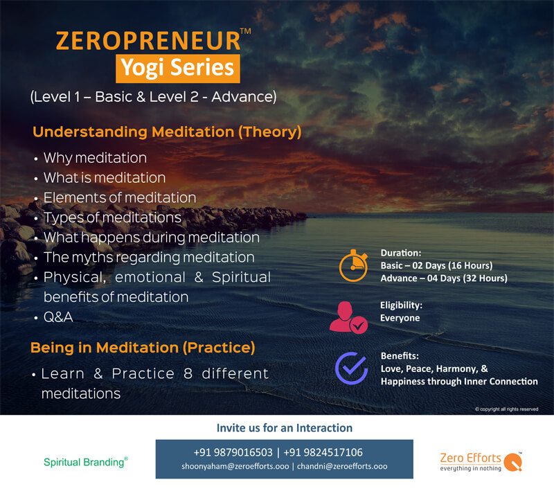 This comes as BASIC & ADVANCE course on MEDITATION. We live life in ABSTRACTS - Learning to live WHOLE & PURE provides different perspective to realize divine potential within. All the powers & solutions are within and being in MEDITATION connects within.
